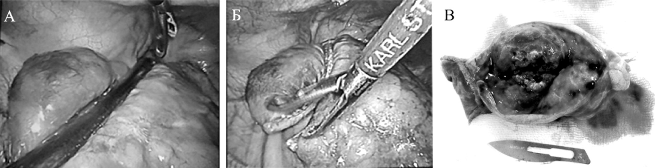 Рис. 3. Этапы торакоскопической резекции лёгкого. Макропрепарат