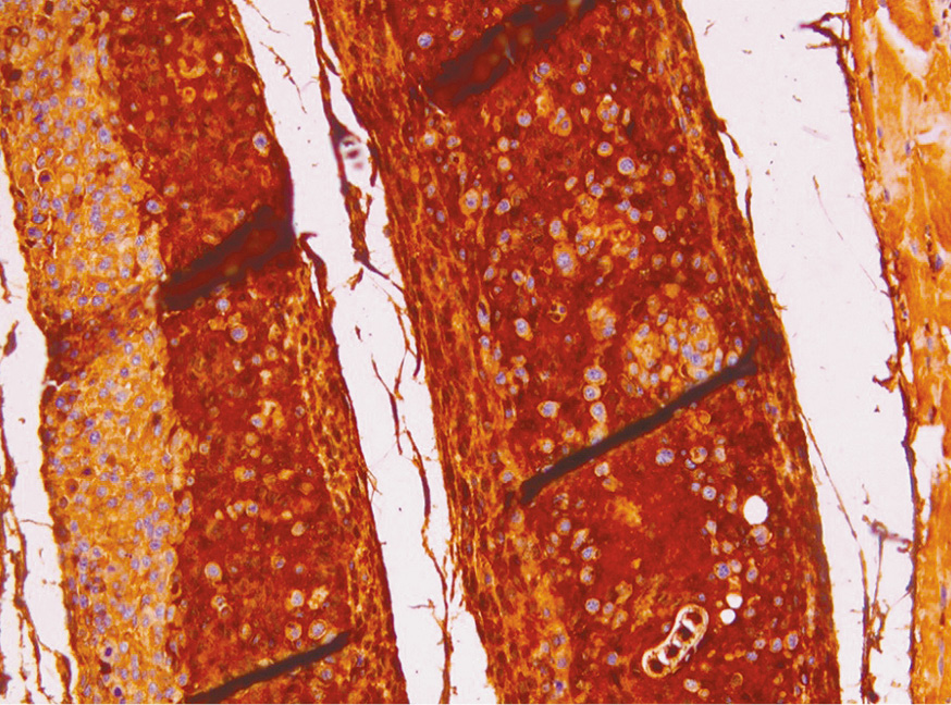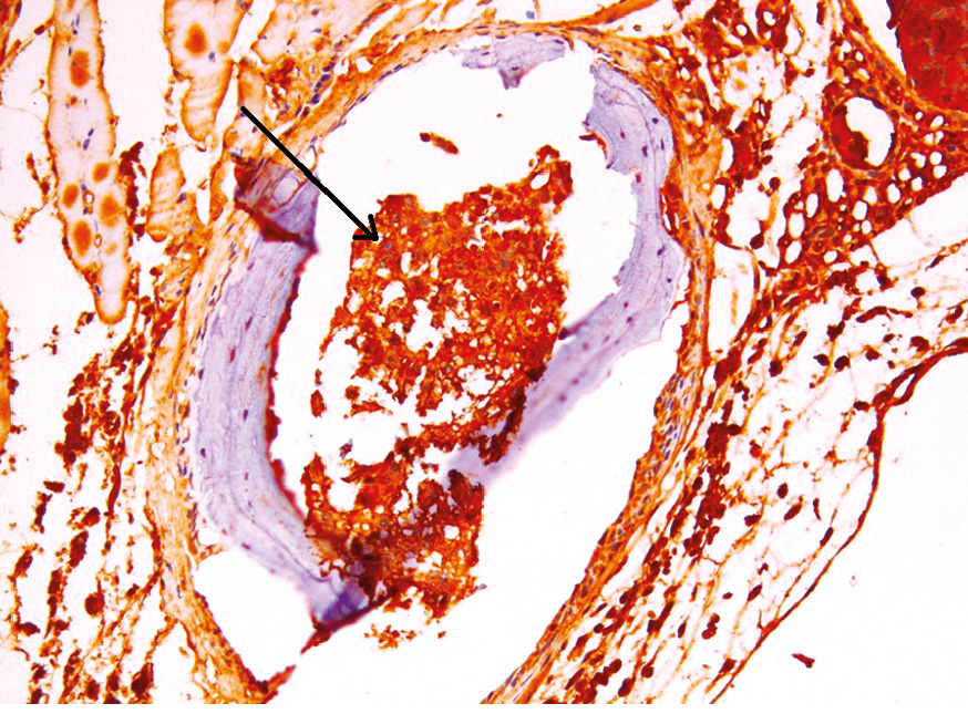 Иммунофенотипирование образцов ткани органов и первичного опухолевого узла, полученных в эксперименте, проводили c использованием первичных антител: TGFb1, Bcl-2, VEGF, Melan A.