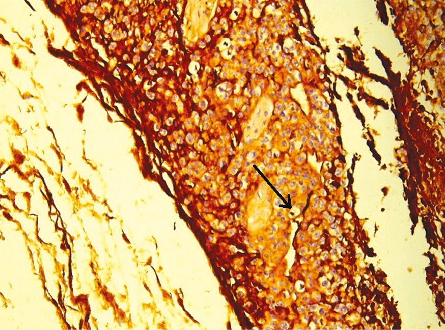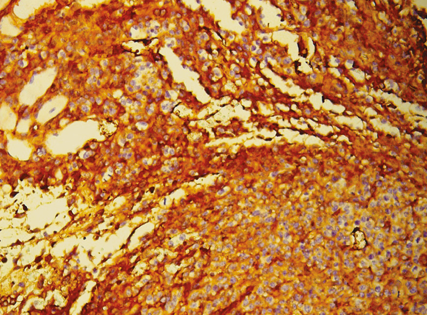 Микроскопическое исследование и фотофиксацию полученных иммуногистохимических препаратов осуществляли с помощью светового микроскопа LEICA DM4000 В. Уровень экспрессии иммуногистохимических маркёров оценивался полуколичественным способом в баллах: