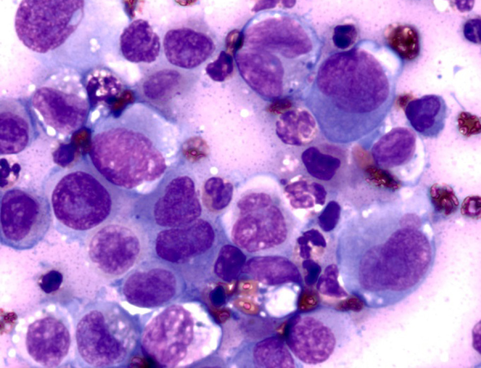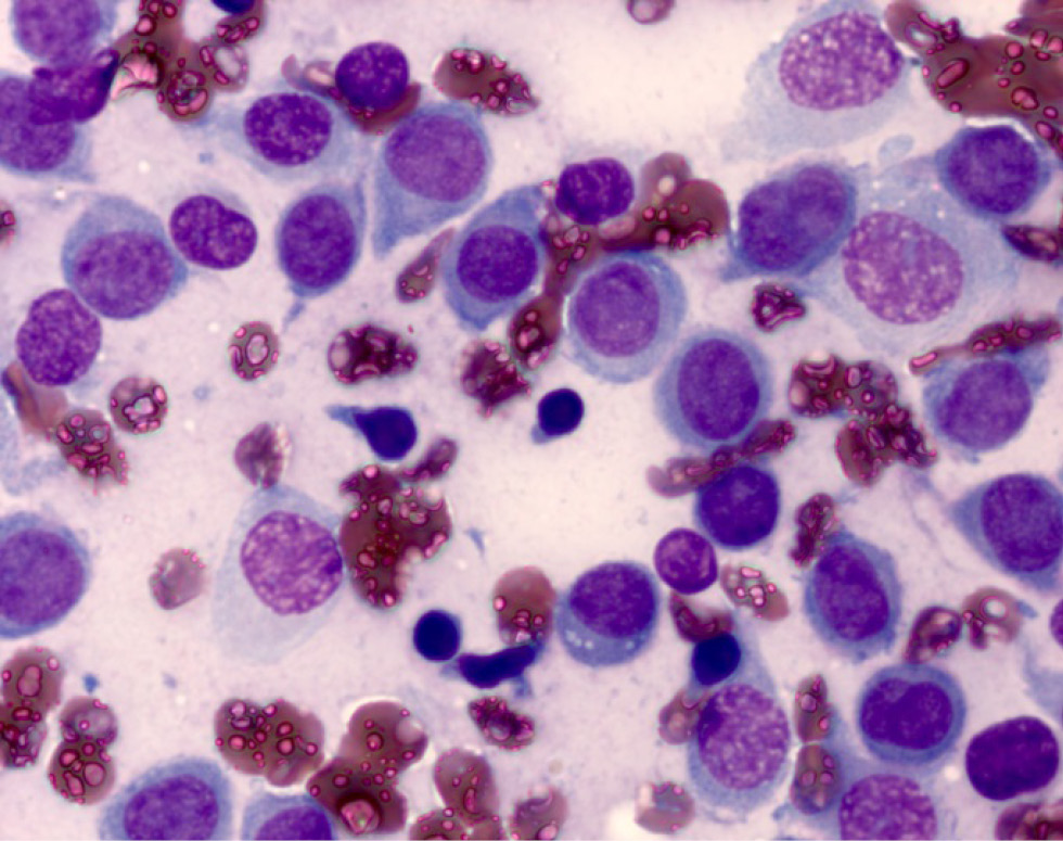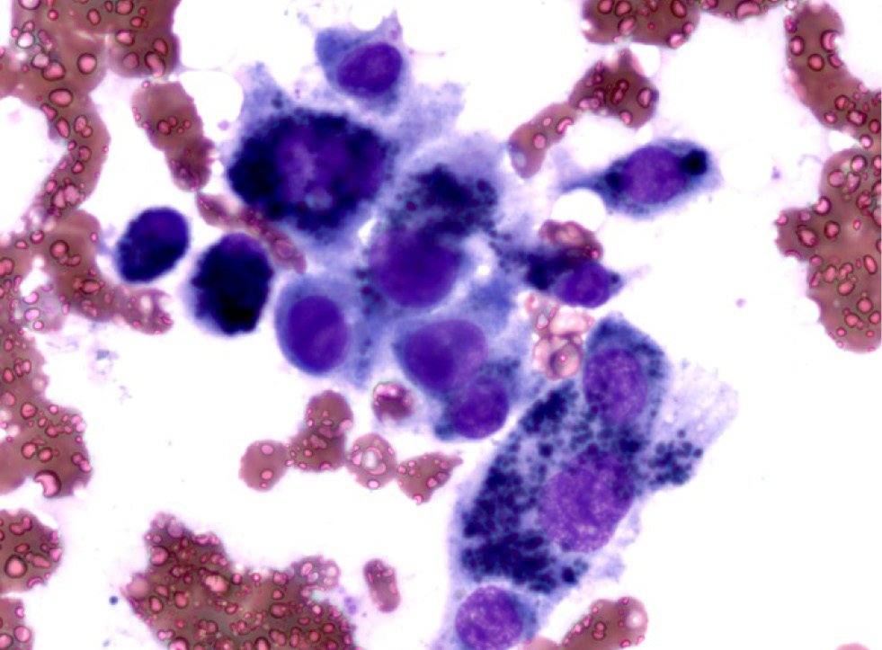 Рис. 1. Тонкоигольная пункционная биопсия лимфатического узла. Эпителиоидноклеточная меланома. Окрашивание по Паппенгейму, ×1000.