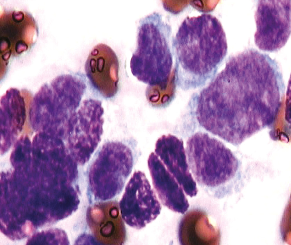 Рис. 5. Цитологический препарат атипичного карциноида лёгкого. Отмечается нарастание клеточного полиморфизма. Окрашивание по Паппенгейму. Увеличение ×1000.