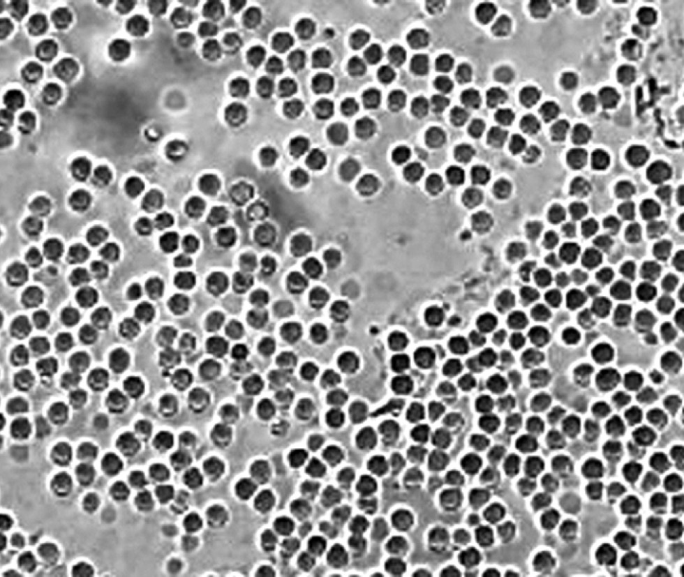 Fig. 6. Microscopic imaging of whole blood and magnetic nanoparticles 1:1 (magnification ×400).