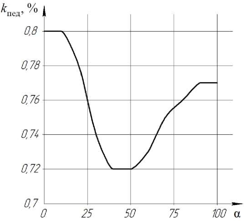 Fig. 7. Coefficient of correction of the hydraulic motor volume depending on the degree of pressing on the acceleration pedal