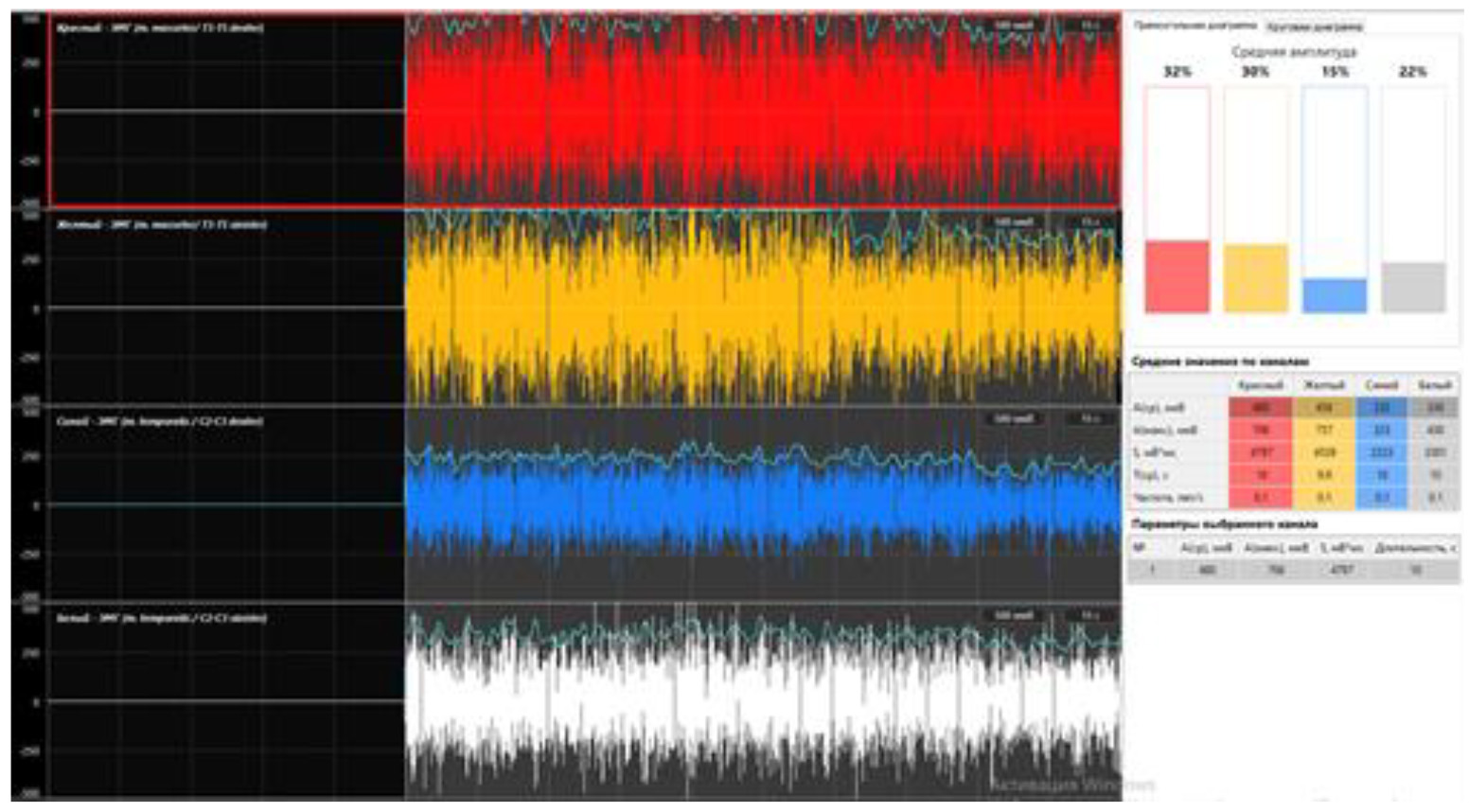 Рис. 2. Электромиографическое исследование при максимальном сжатии пациентом на аппарате «Колибри» (Нейротех)