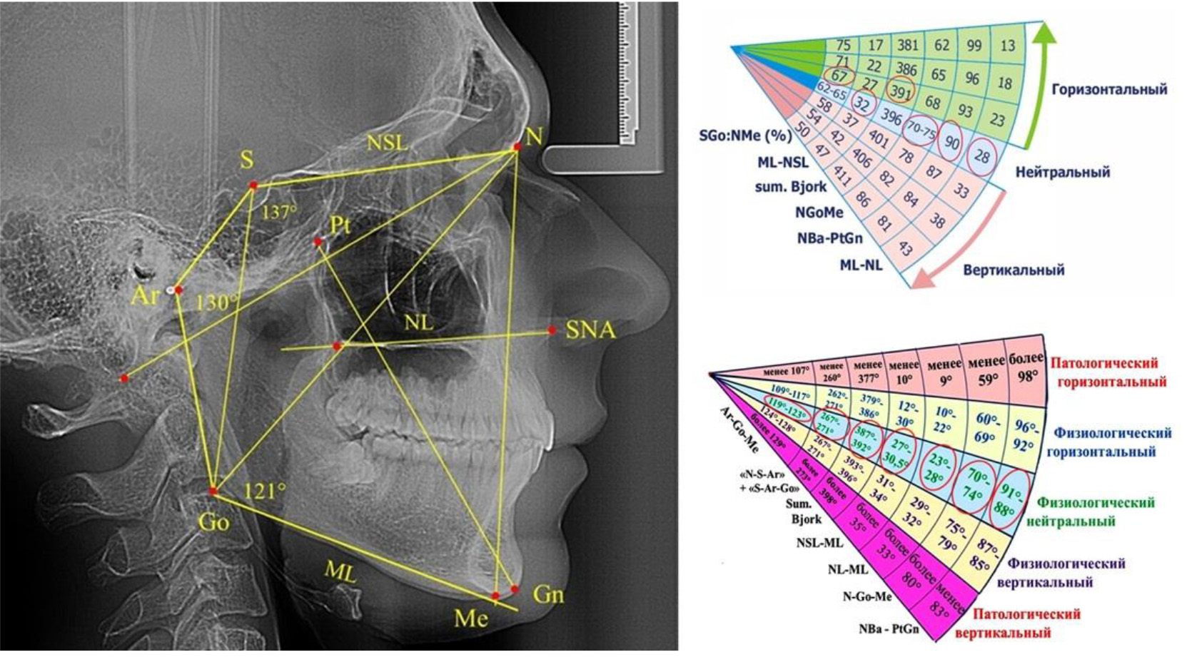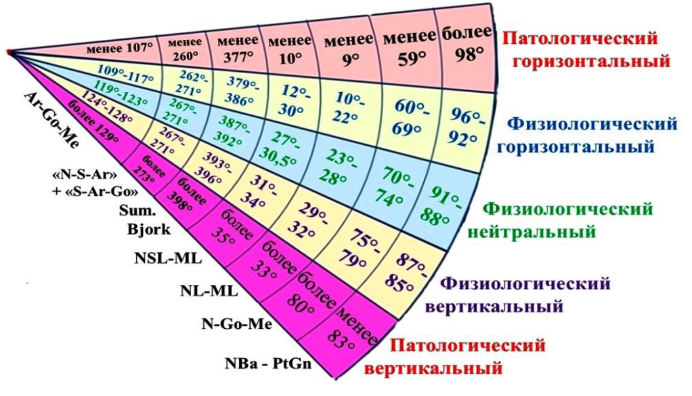 Аналитический обзор угловых параметров лица с различными типами роста по данным телерентгенографии