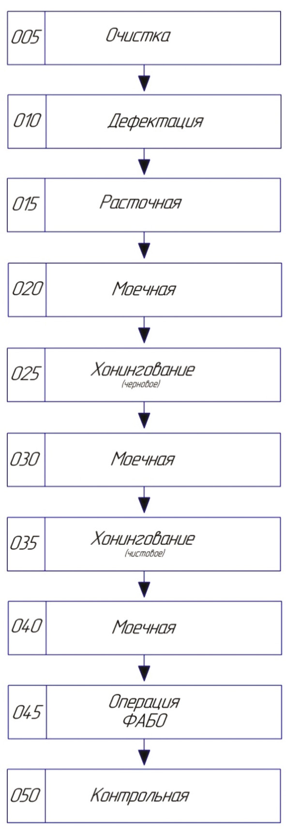 Рис. 1. Технологический процесс ремонта гильз цилиндров двигателя
