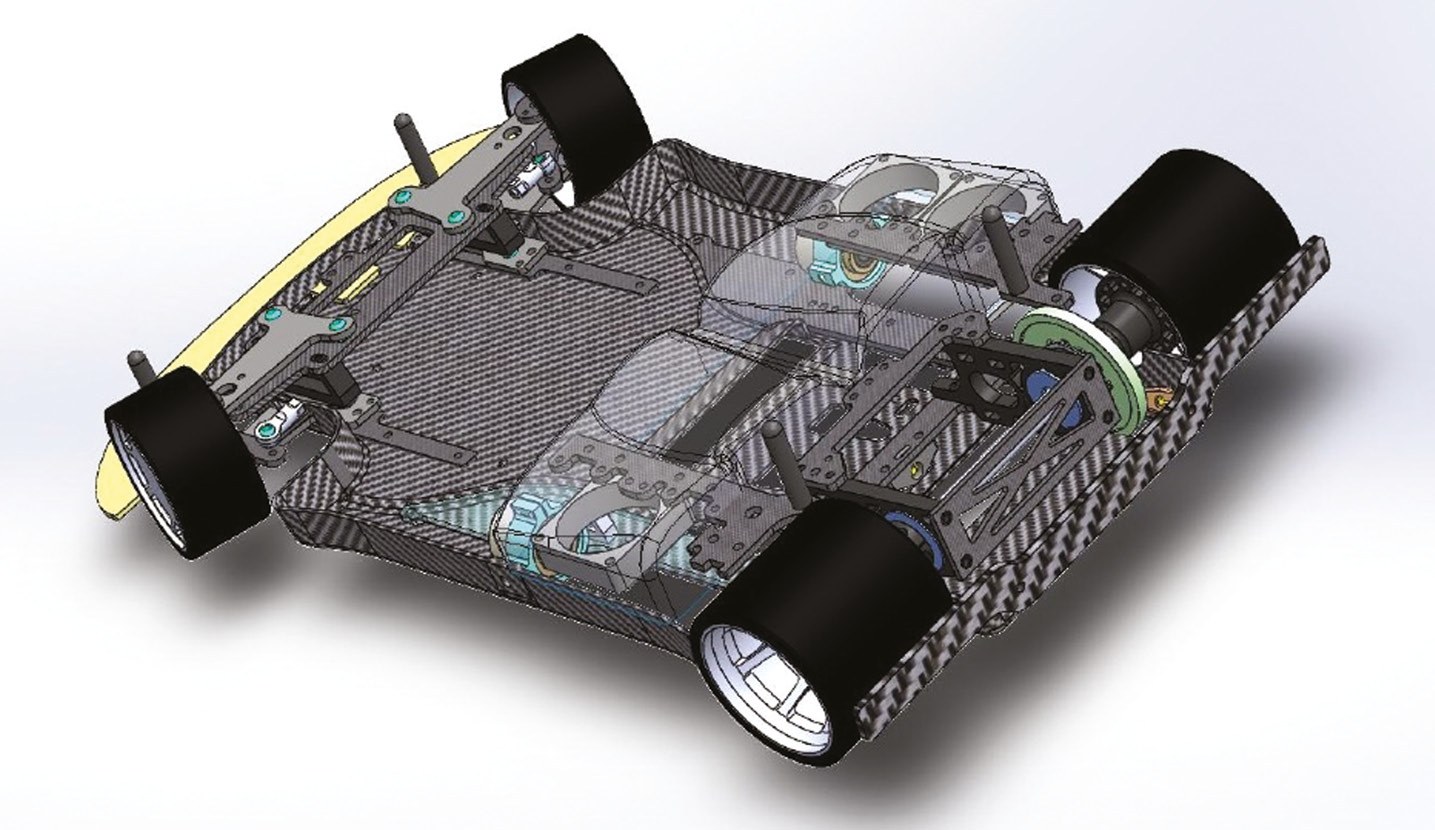 Методы. Для отработки технологии применения топливных элементов прежде всего необходимо создать испытательную платформу. Так как подходящей по своим параметрам модели-базы для испытательной платформы не существует, она была полностью с нуля спроектирована и изготовлена. Большое внимание в модели было уделено развесовке, созданию дифференциала на задней ведущей оси, созданию передней многорычажной подвески, модульности конструкции и ее надежности. Для создания 3D-модели прототипа были использованы такие программы, как система автоматизированного проектирования работ (САПР) SolidWorks с модулем Simulation и Ansys (рис. 1).