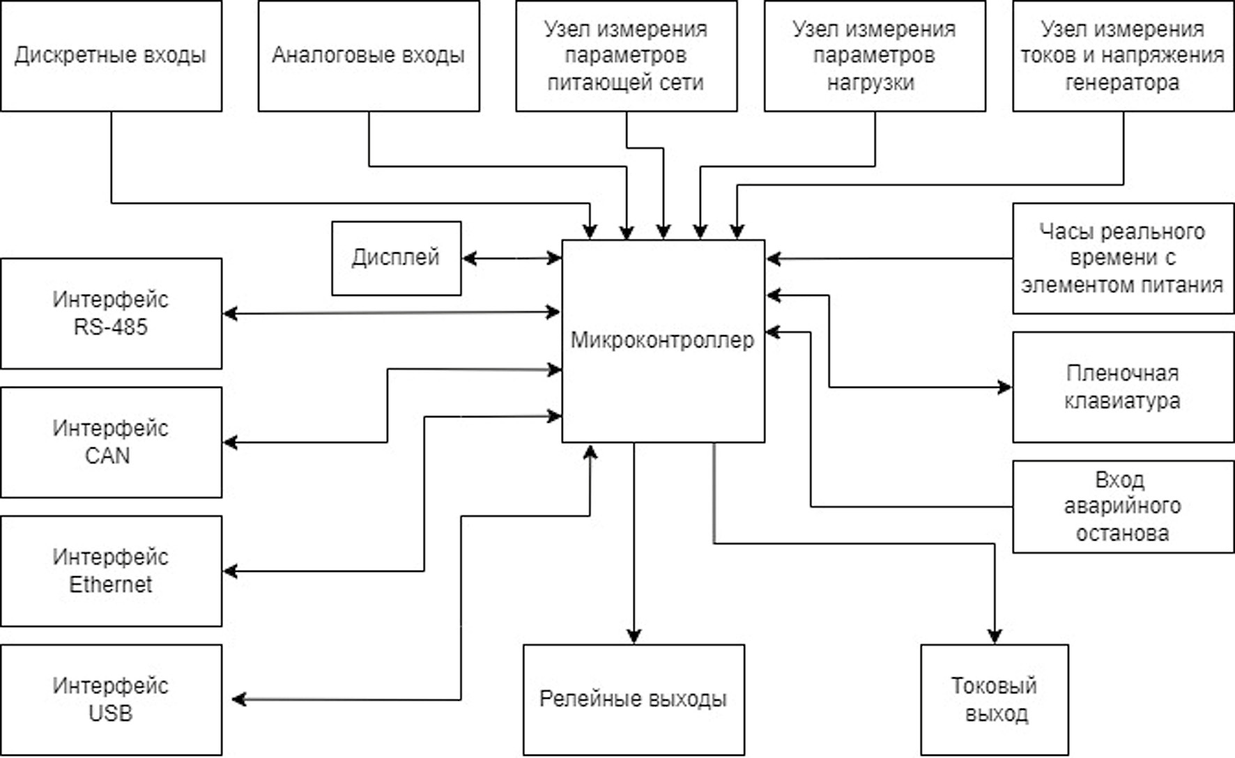 Результаты. Разработан прототип контроллера, способный обеспечить работу ДГУ при значительной перегрузке. Структурная схема приведена на рис. 1.
