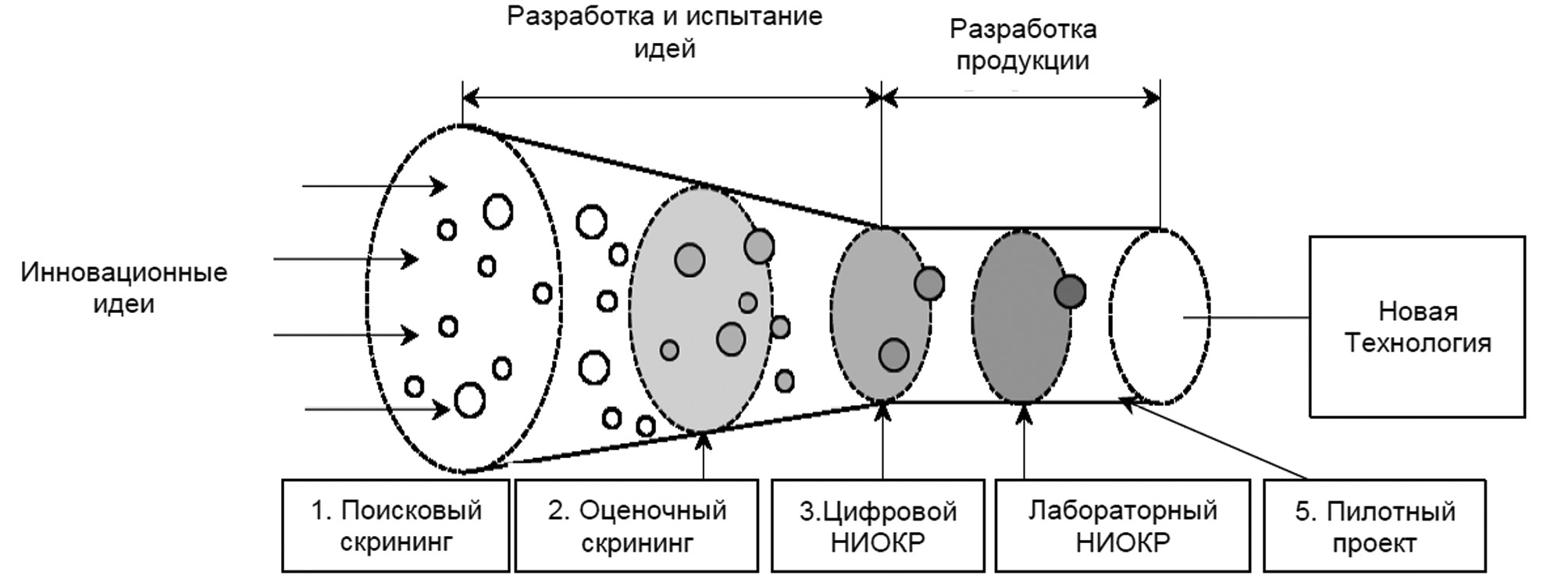 При этом основой инновационного управления в большинстве нефтегазодобывающих компаний остается классическая модель инновационного процесса Уилрайта–Кларка (воронка инноваций) [6].