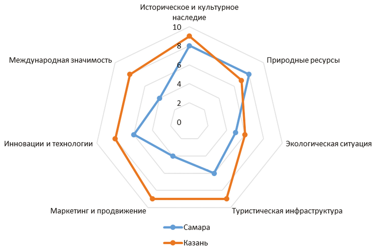 Обоснование. Туристическая деятельность имеет большое значение для экономики сегодняшних городов, стимулируя экономический прогресс и общественное развитие. Многие города формируют особые туристические образы, чтобы привлечь путешественников [1]. В настоящее время внутренний туризм в России стремительно набирает обороты и является актуальным направлением [2]. Город Самара обладает значительным потенциалом благодаря богатству своей культуры, истории и выгодному расположению. Однако Самара не входит в число наиболее посещаемых туристических центров страны [3].